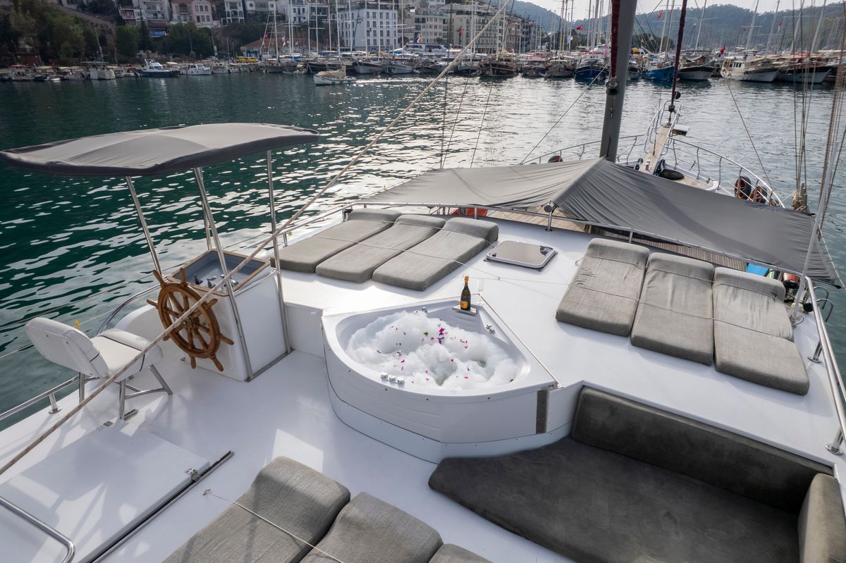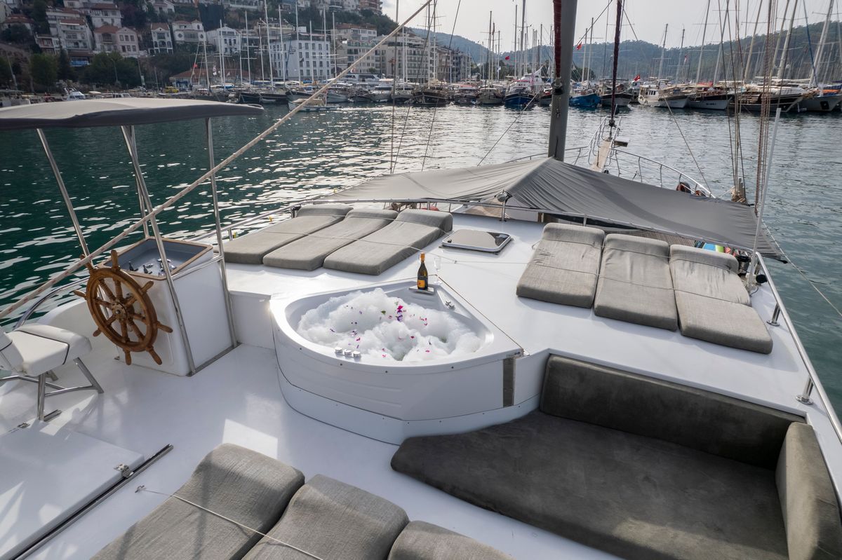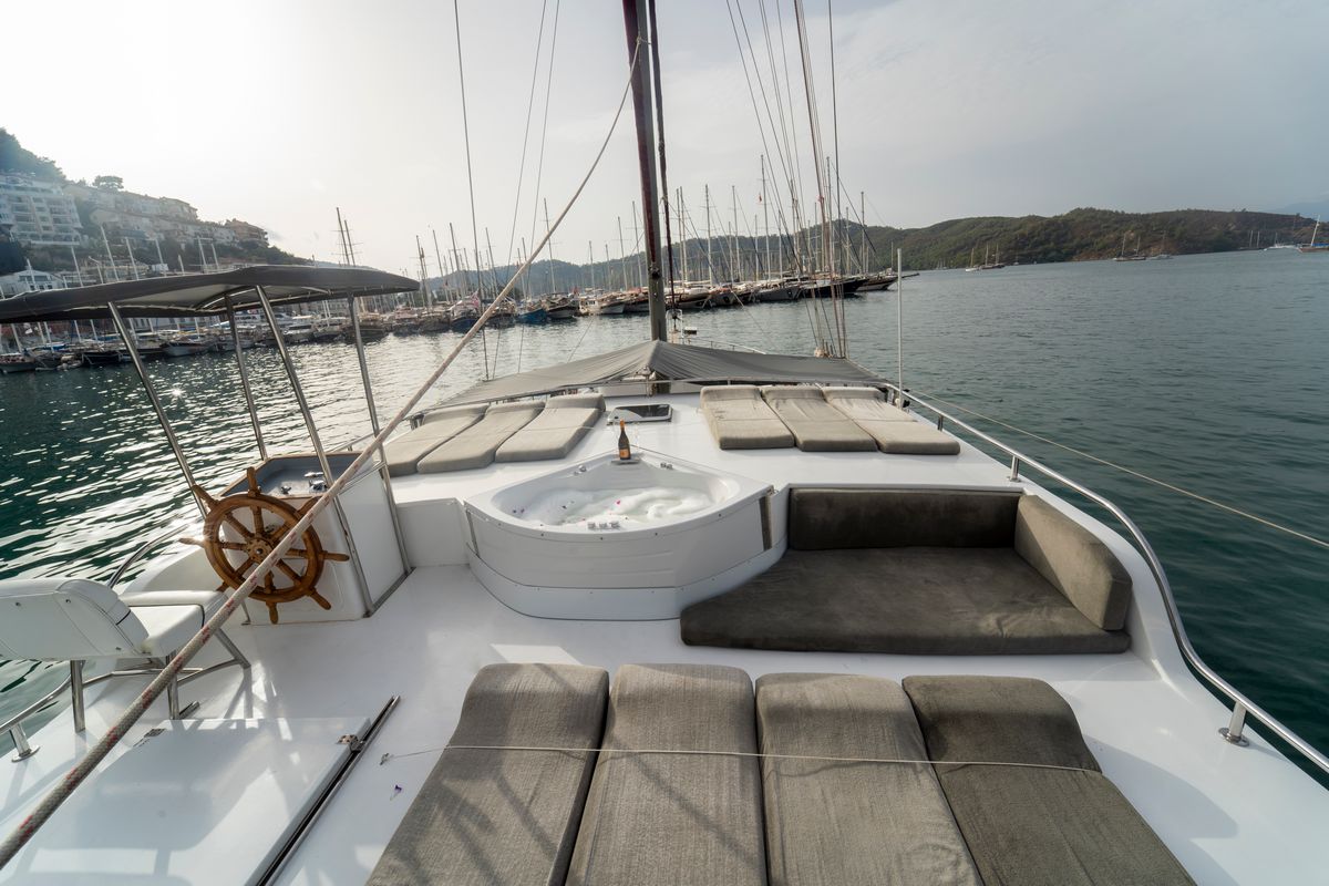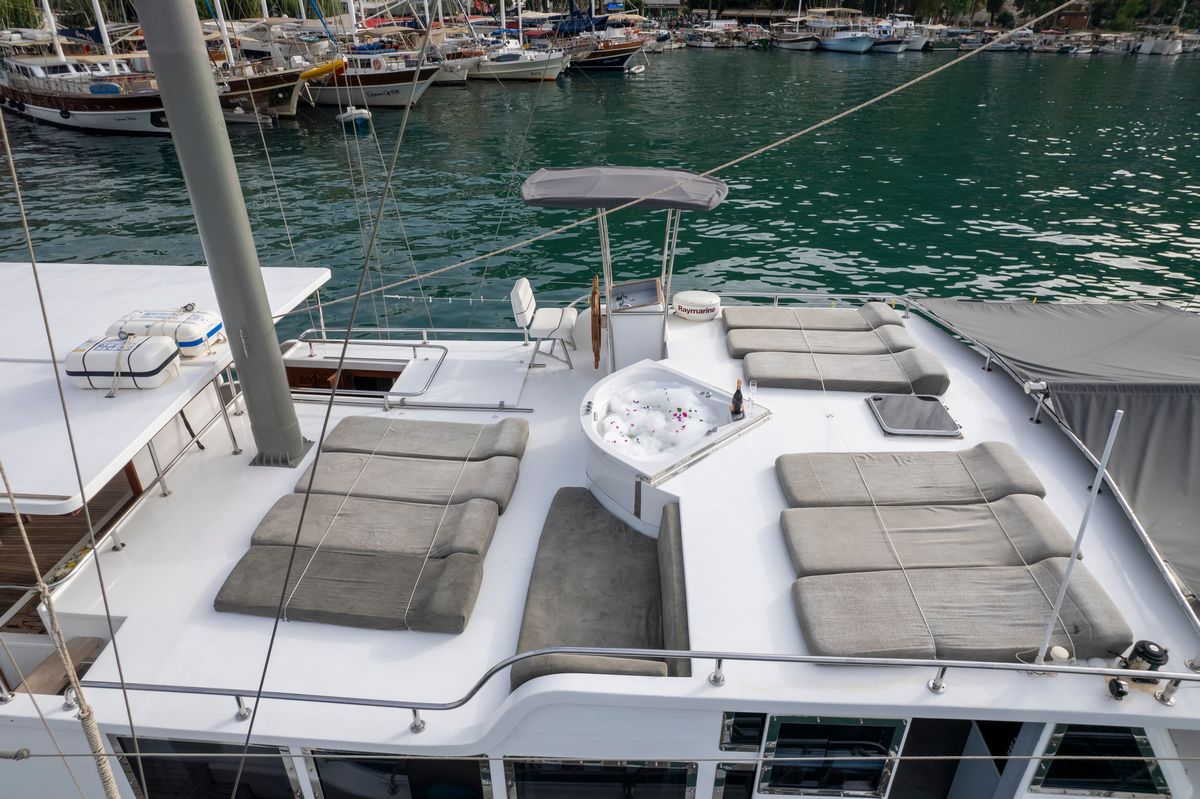 Its spacious cabins and expansive flat deck provide the perfect setting for relaxation, while its sleek design ensures a smooth and graceful cruising experience.